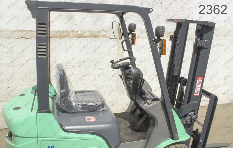 Дизельный автопогрузчик Mitsubishi Б/У с интентарным номером 2362 2008 года выпуска. Состояние - Хорошее. Имеет грузоподъемность 1500 кг. Гарантия: 3 мес или 500 м/час.
